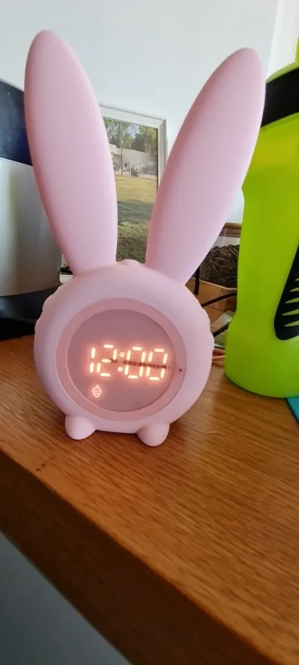Réveil matin avec veilleuse Led en forme de lapin.